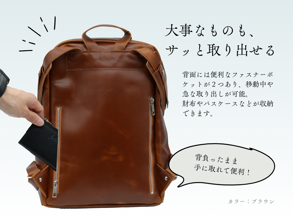 「自然と整理整頓ができてしまう」をコンセプトに、機能性とデザイン美を兼ね備えた “ギャップ萌え”大人リュックです。