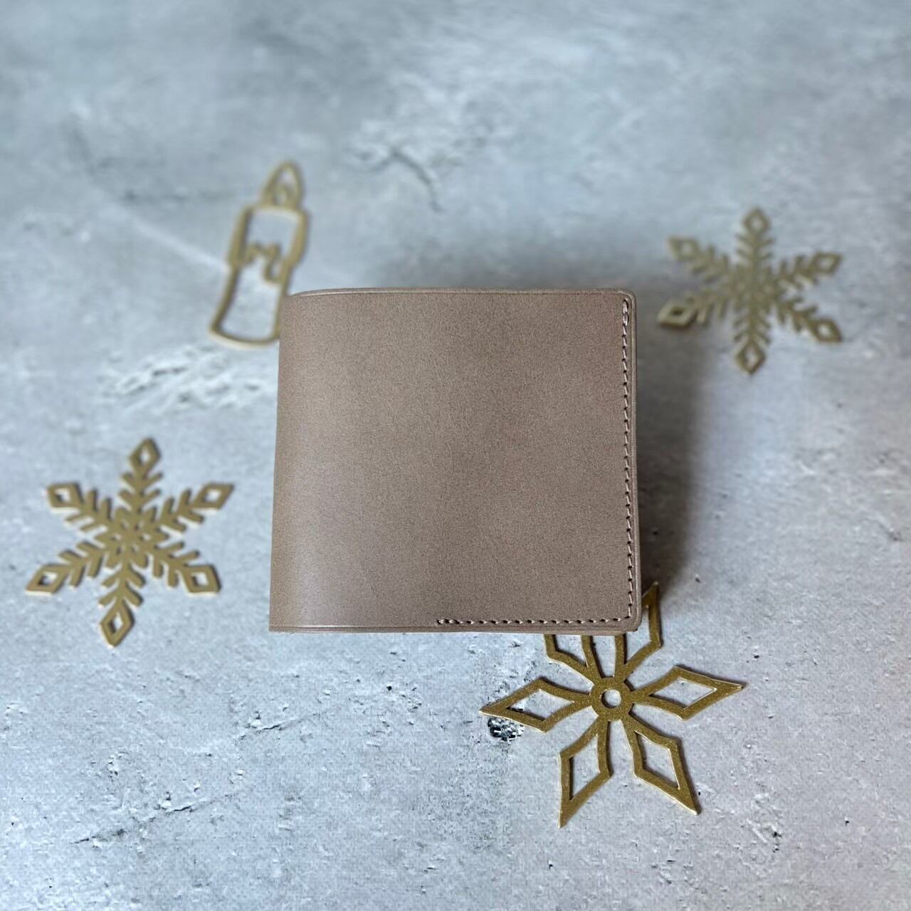 手のひらにおさまる二つ折りのコンパクト財布です。